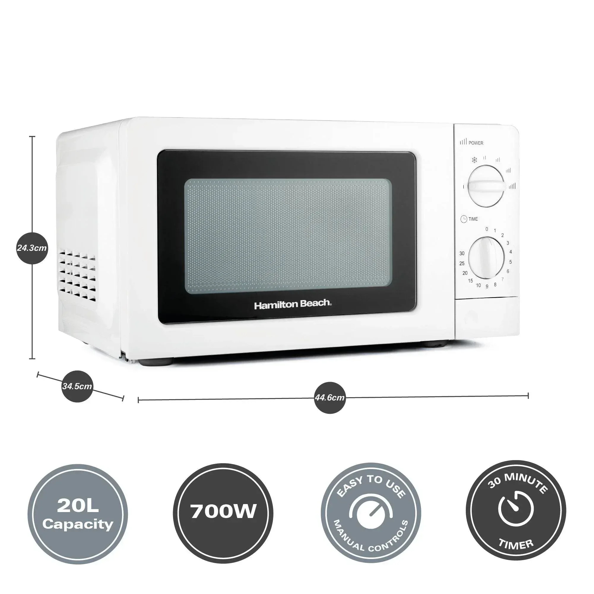 - Compact Design: The compact microwave design of this 20 litre microwave oven makes it a perfect fit for kitchens with limited space, such as student accommodation, offices, and small apartments. This mini microwave provides powerful 700W performance without taking up too much valuable worktop.