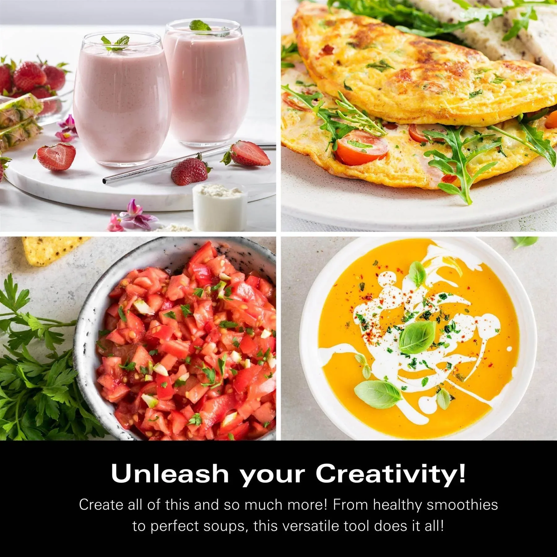 - Ultimate Versatility: The cooking possibilities are endless with this 4-in-1 hand blender from soups to smoothies, omelettes and more - get creative!